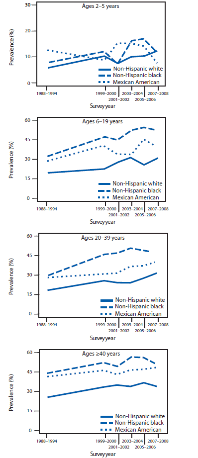 That is not correct. While non-Hispanic whites have generally lower rates of obesity compared to Blacks or Hispanics, they have suffered a substantial increase in obesity over the last few decades. See Freedman, Obesity --- United States, 1988--2008, Morbidity and Mortality Weekly Report (MMWR) 2011. BullShit !